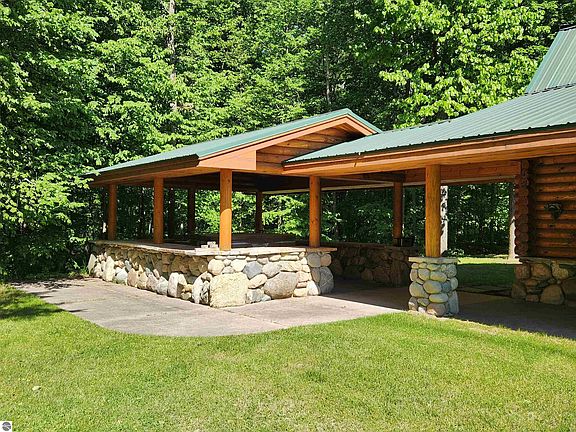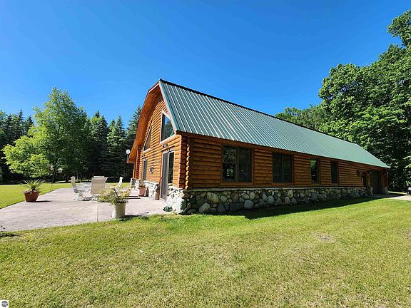 PRIVATE, BEAUTIFUL LOG HOME ON 15 ACRES, with several outbuildings! Two-story, log with custom natural stone accents and stamped concrete floors with in-floor heat! Modern kitchen with high quality stainless appliances, quartz counter top and hickory cabinets. Huge master main floor bedroom with large ceramic shower, walk-in closets, and laundry. Second story boasts its own bedroom, bathroom, kitchen and living room, with room for additional bedrooms. Home has full length covered porch, with custom lighting there is also a covered gazebo for a hot tub or cookouts! Includes a detached outbuilding with two horse stalls, water, electric, additional 30x72 pole barn, insulated, heated, covered lean to on both sides, in-floor radiant heat via wood burning boiler system with propane backup system in place. An additional 27x30 pole barn for additional storage!!! There is a beautiful deep pond on the property - Stocked with many varieties of fish, aerator, and ready for a lovely waterfall. Enjoy your view from the elevated deer blind in the apple orchard or watch them from your living room. A must see in the heart of Beautiful Northern Michigan just a few miles from Torch Lake and the other amazing Chain of Lakes.