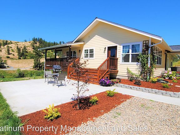 Five Bedroom Home with Mountain Views - 5 Bedroom, 3 Bath home in a country setting! Open Kitchen to dining area, with access to patio. Large pantry and office off kitchen. Wood burning fireplace. Master bedroom has walk in closet and own access to deck. 3 bedrooms down stairs with an open family room. Spacious utility room with lots of storage rooms, and a mud room. There are washer and dryer hook-ups on both levels. Has well water, septic and propane. Large detached 3 bay shop, with 2 covered over hangs on each side. This home sits on 16.12 acres, with about 3 acres landscaped, and large fenced in garden area. Creek at the end of the yard, and mountain views and access surrounding. This rental gets excellent wireless high speed internet from Local tel as well. 1 outside pet is allowed, but absolutely no pets allowed inside the house. Plus a pet rent of $50. per month. A 6 or 12 month lease term is optional. No Cats Allowed (RLNE4590504)
