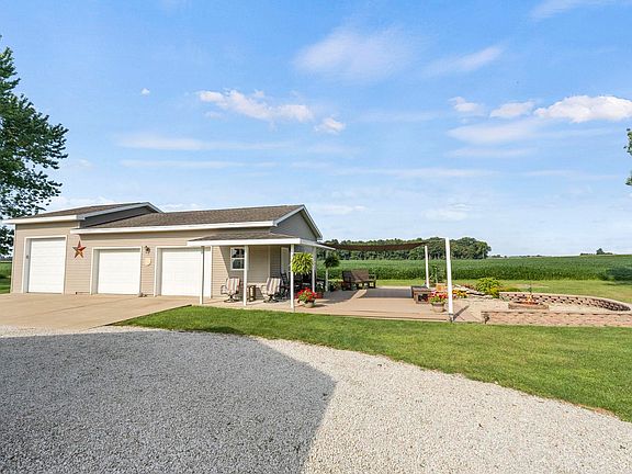 Inviting Country Home on nearly 2 acres of beautifully landscaped grounds is ready for you! A convenient circle driveway welcomes you to this property that features a home with 3-4 Bedrooms, 2 Baths, 2-Car Attached Garage, Newer Roof & Custom Fireplace. It also features a great outdoor space with a Pole Barn, Patio with firepit area, vibrant garden, and a variety of fruit trees, including apple, pear, and peach. Walking into the home you will find the family room opens to the eat-in kitchen with breakfast bar & ample countertop space. It also has patio doors that invite you to enjoy the outdoors on the spacious deck complete with a sunshade. The formal dining room has hardwood floors, while the large living room, warmed by a beautiful custom wood fireplace, creates a cozy atmosphere for gatherings. Also on the main level, you will find 2 bedrooms & 2 full bathrooms. The upstairs has an additional bedroom, along with a large landing room that could easily serve as a fourth bedroom or office space. The basement also provides opportunity for storage or to potentially finish. Outside you will find a heated, detached 3-car pole barn, complete with a workshop area, air lines, and an oversized overhead door, making it ideal for any hobbyist. A 2-car attached garage & 2 additional garden sheds with overhead doors provide ample storage. Convenient location just outside of town, don’t miss your opportunity to call this delightful property home!