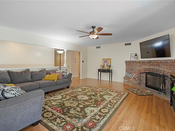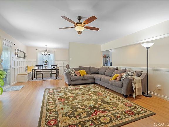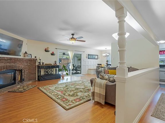 RAMONA NEIGHBORHOOD-MID-CENTURY SINGLE STORY- This quintessential California ranch style has been meticulously maintained and upgraded by its loving owners. The cozy living room with a fireplace, greets you as you enter the home. Adjacent is the breakfast nook/dining area with custom architectural wood paneling that creates a welcoming space for entertaining. Updated kitchen with granite counters, gas cooktop, and modern cabinetry. Master bathroom has been completely remodeled with large shower, dual sinks, and quartz counters. Beautiful wood laminate flooring throughout much of the home. Park-like backyard, with an alum-wood patio cover, storage shed, and fruit trees, including avocado, plum, tangerine, apple, and lemon. Upgraded dual-pane windows and FULLY PAID solar power production make this home super efficient. Centrally located to California Baptist University, shopping, and transportation. This home is truly turn key and ready for its next owner.