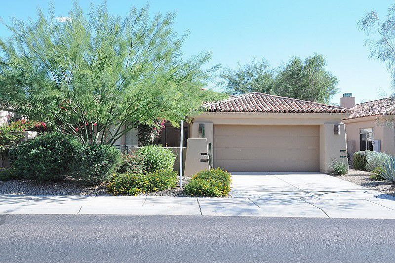 This spotless Crown Point home sits on an interior south-facing lot in guard gated Talon Retreat in Grayhawk. Recently renovated with new carpet and interior paint, this great room plan shows fantastic. Kitchen boasts 42'' raised-panel maple cabinets, tile in kitchen, entry, and baths, b-in ent. cntr. w/fireplace, and large master suite w/separate tub and shower. Back yard features a b-in BBQ, water feature w/boulder water fall, fire pit, flagstone covered patio seating area, and low-maintenance landscaping. All this just down the street from the community pool and spa and walking distance to multiple shopping and dining options.