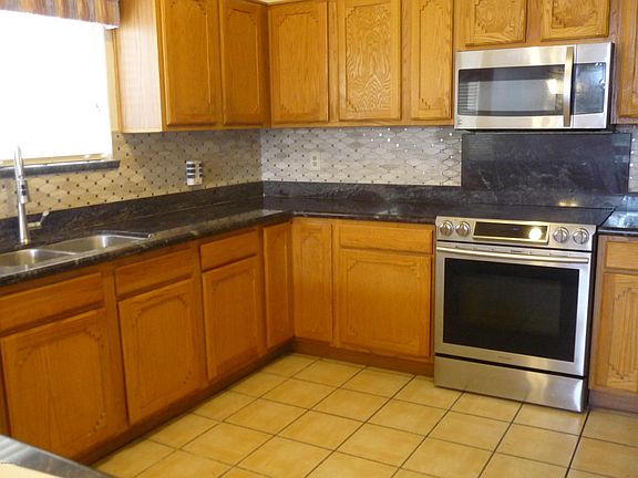 Freshly painted 4 bedroom/ 2 bath spacious home features wood laminate and tile floors. Kitchen has side by side fridge, built in microwave, granite counter tops and pantry. Cute bay window breakfast nook. Family room with fireplace. Also formal living room with fireplace and formal dining area. Master bedroom with access to back patio, master bath has separate tub and shower along with double sinks. Hall bath has single sink vanity and bath/shower combination. Relax on the patio and enjoy the backyard. Very convenient location. Pets considered with additional deposit.