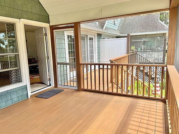 Sunrise skiesSunset skiesSpacious front screened porchKitchen with an islandBack open deck