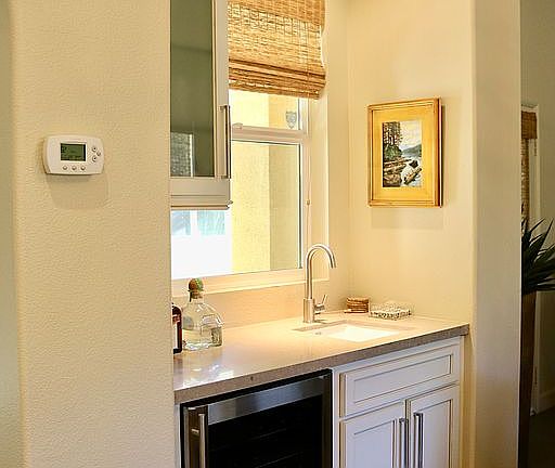 Custom interior design so close to Coachella, Stagecoach, golf, and polo! A shaded courtyard opens to the spacious 3BR/3BA main house plus 1BR/1BA attached casita with a private entrance. Recent upgrades include gorgeous tile floors, window treatments throughout, custom cabinetry, and more. The Master Suite is a tranquil retreat with a fireplace, contemporary soaking tub, and large well-lighted dressing room. The chef's kitchen features a professional gas range, oversized island, and contemporary quartz countertops. Outside, a private rooftop sun deck features a custom bar with Sub-Zero refrigerator, ice maker, and sink. Conveniently located near public golf at SilverRock, Rancho Santana is the best of South La Quinta without the expenses of club membership. Favorable IID utility rates keep costs down. Amenities include security gates, walking trails, putting green, and a grassy park, all included in one of the area's lowest HOA fees of $170/month!