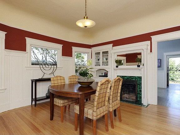 Open Sunday, 10/4, 2-4:30 Quintessential 2BR/2BA Light-Filled Craftsman Bungalow boasting newly refinished gleaming hardwood floors, wonderful entry, warm living room, formal dining room with fireplace, open sunny kitchen that leads to a large sunny yard perfect for afternoon BBQs, all this and a large detached garage and enormous basement with shuffle board court!