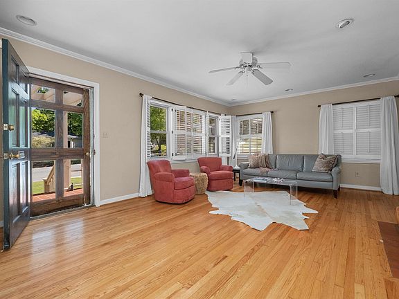Crestwood charmer on corner lot with lots of updates, outdoor spaces & bonus office/studio. This 3BR/2BA home is beautifully situated with expansive front lawn & porch. Spacious living room features fireplace & plantation shutters. Kitchen offers marble countertops, eat-in area, plentiful cabinets & stainless appliances. Natural light floods through the french doors in dining room & updated, doubled-paned windows throughout the home. Kitchen & dining room open to large back deck for seamless indoor/outdoor living, perfect for entertaining! Primary suite is spacious with a marble-topped double vanity & closet in the bathroom. Additional closet storage in primary bedroom. Guest bedrooms are generous in size & the 2nd bath features marble countertop and large tub/shower combo. Don't miss the detached office/studio accessed from large, fenced backyard. Walk to Crestwood Park, pickleball courts, shops and Filling Station in this happening, close-in location with easy commute downtown!