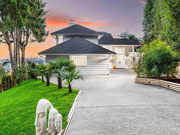 Gorgeous residence in prestigious Sentinel Hill. This spacious 5,000+ sf home sits just mins from downtown in one of West Vancouver’s most desirable neighbourhoods. Enjoy spectacular close-in panoramic city and mountain views from nearly every room. Features 5 beds (4 up), 6 baths, large entertaining areas, office, 4 gas F/Ps & a vaulted grand entrance foyer. The 12,750 sf level, private lot impresses w/ a long gated driveway, massive auto court, manicured gardens, patios & decks, and an oversized 2-car garage. Walk to Park Royal & Ambleside Beach. Views, location, privacy & lifestyle—all in one