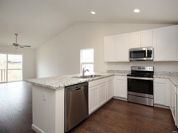 This Summerfield Ranch 2 bed 1 bath home will be move in ready spring of 2023. This cozy cottage is perfect for entertaining! Vaulted ceilings and wood laminate flooring in main living areas. The kitchen features white 42” tall cabinets, white ice granite laminate countertops, large peninsula with extended countertop for breakfast bar, and stainless steel GE appliances. The master suite features two closets and access to bathroom with 5ft shower and double bowl vanity. White six panel interior doors, upgraded lighting with ceiling fan prewires, main floor laundry, and one car garage. The lower level includes a ¾ bath rough-in for future finish. Located in House Springs, this community features 263 homesites off Bear Creek Road, just east of Gravois Road and Carol Park Road. Enjoy peace of mind with McBride Homes’ 10 year builders warranty and incredible customer service! *Similar Home Shown in Photos*