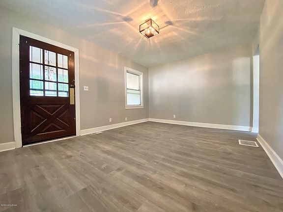 This fully remodeled 2 bedroom 1 bath boasts new flooring in the kitchen, great room, bathroom and both bedrooms. The bonus room could be used as a third bedroom. All new light fixtures, newly painted kitchen cabinets, kitchen countertops and new dishwasher are just a few of the new features of this gem that's close to the up and coming Iroquois Park area. The covered front porch and large fenced in back yard give way to mature trees and off-street parking.