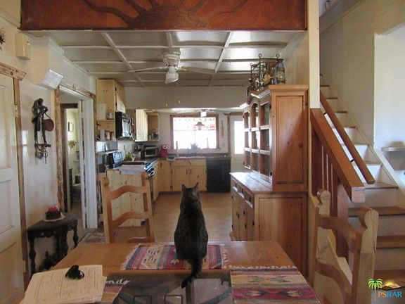 JOSHUA TREE Ranch house! This home is situated on 2 fully fenced acres. Easy access off paved road yet very private. With a little TLC this property can be spectacular. Main house features 3 bedrooms 2 baths newly updated kitchen, new cabinets, counter tops, cabinets, appliances. Large laundry room, folding area, wine refrigerator, living room with fireplace. Newly remodeled guest house with kitchen and bathroom, storage shed/tack room, water piped to back acreage if you choose to bring your horses. Just minutes to Joshua Tree National Park, Art galleries, Farmers market, Restaurants.