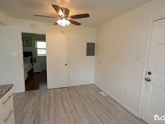 Highly desirable 3 bdrm/2bath well maintained Brick Ranch Home. Newly renovated bathrooms and kitchen with glass backsplash and stainless steel appliances. Recess lighting in living room, security sensor exterior lights. Quiet, mature neighborhood. Beautiful Hardwood floors in Main Areas, Owners Suite and Bedroom. Carpet in 3rd Bedroom, Hardwoods Beneath. Freshly painted. Additional Den or Man Cave and Flex/Office space. Spacious yard on large lot.