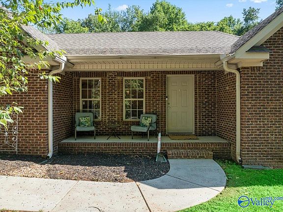 Welcome to your private oasis with NO HOA restrictions! This charming 3 bed, 2 bath full brick home on a spacious 0.53-acre lot offers tranquility and privacy with mature trees and large fenced in backyard. Features include a covered front porch, cozy interior with new paint, lots of storage, and a modern kitchen with lots of countertop space. The primary suite is isolated and features a trey ceiling with fan, large closet, and on suite-bathroom. One car garage and extra parking pad handy for parking. Conveniently situated 10 minutes from shopping and schools and 30 min to Huntsville and Redstone Arsenal.