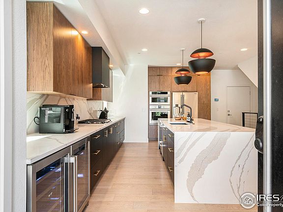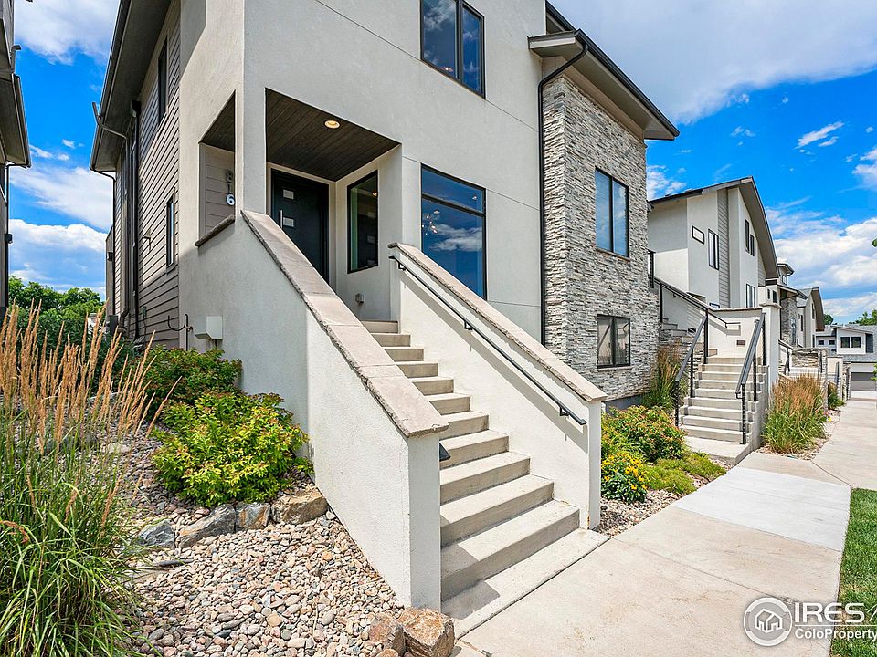 Welcome to the latest and greatest opportunity to live in the beautiful, centrally located River Modern neighborhood! This gorgeous, low-maintenance townhome was built in 2017 and extensively updated in 2021 with all new hardwood floors, new kitchen with high-end appliances, cabinets, countertops and island, all new light fixtures, interior paint, and smart features for comfort and safety throughout. The open main floor plan is perfect for entertaining with flexible space for either a living room or dining room, while the garden-level basement is ideal for lounging and exercise with a large picture window letting in natural light. Upstairs, you'l find a luxurious and private primary suite, and two additional spacious bedrooms with high ceilings. The rooftop deck provides another amazing space to entertain with breathtaking view of the foothills and nearly 360-degree view of Fort Collins. The Spring Creek and trail is just a few steps away, and for ease of access in any direction, the location cannot be beat.