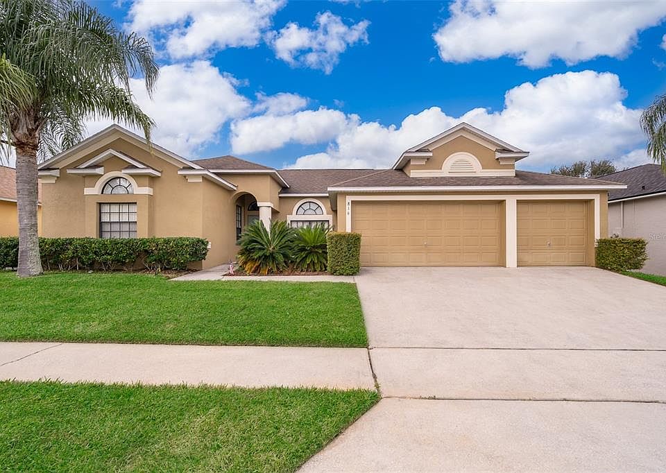 Spacious 4 bedroom with den /study set up as 5th bedroom, 3 full bathrooms, 3 car garage, heated pool and spa. Located in The Estates at Legacy Park. This is a great floorplan with bedrooms split 3 ways. There is a large, combined living/dining room with sliding doors leading to the west facing heated pool & spa, along with a separate family room combined with kitchen and dinette area. Kitchen is oversized with a built-in desk, island, stainless appliances and windows overlooking pool area. Separate laundry room just off the kitchen. This is an overall beautiful home ready for a family now or to use as a rental property. Comes fully furnished. New roof just completed Feb 2024 Room Feature: Linen Closet In Bath (Primary Bedroom).