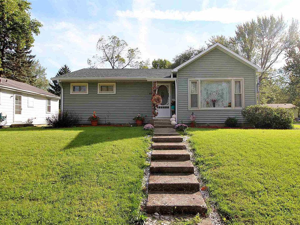 WOW! Almost like new! Roof, furnace, central air, lights, paint, fence are all brand new. Updated windows. Seller had hardwood floors redone in the living room, new laminate flooring in the kitchen and bath. Fully equipped kitchen with freshly painted cabinets, new back splash and new appliances. The yard has all new wood fencing, patio area and garden. Large detached garage with workshop area. This home is cute and cozy! Washer and dryer are negotiable.