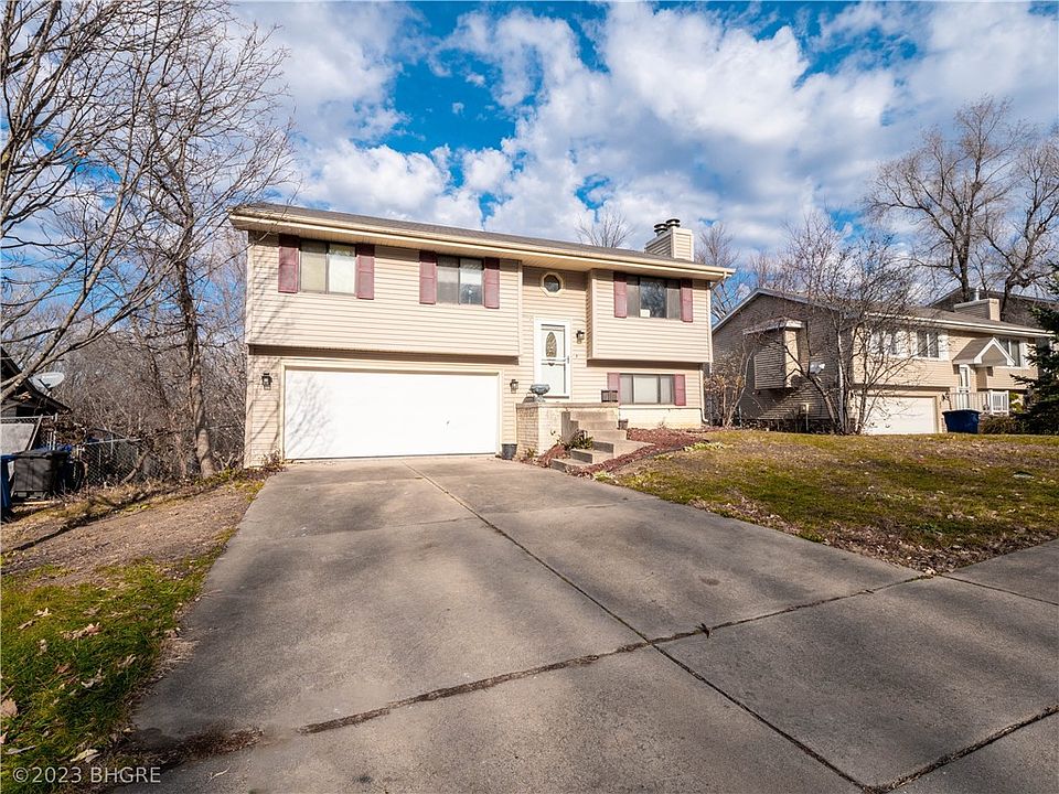 This beautiful split foyer home is located on a serene cul de sac, a dead-end street that offers a safe & peaceful environment for families with children. The main floor is comprised of 3 cozy BRs & an elegant BA, which conveniently connects to the luxurious primary suite. The living room is bright & welcoming, perfect for hosting guests or enjoying family time w/wood burning fire place. The eat-in kitchen is open & spacious, featuring French doors that lead to a charming area where you could build your dream deck & enjoy the fresh air. The primary suite boasts a stylish & spacious closet, providing ample storage space for all your belongings. The lower level of this impressive home includes a comfortably sized living room, complete with a 3/4 BA , & walk-out access to the backyard with another wood burning fire place. The attached 2-car garage also offers convenient access to the lower level. This stunning property is located in close proximity to essential amenities, such as Walmart & Home Depot, as well as the picturesque Erwing Park. Furthermore, the property enjoys easy access to major transportation routes, such as the 235 & the bypass - allowing for quick & convenient travel to and from the property. 13 Mo HWA Platinum Home Warranty included!