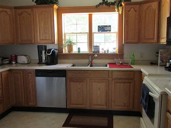 Attractive home with fenced in back yard and 2 car garage. Home has 3 possible 4 bedrooms with master on main floor. Large living room, dining room or home office. and large eat-in kitchen with vaulted ceiling with all appliances. Laundry area in back entry. Upstairs has loft and 2 bedrooms. This home was updated a few years back including wiring, insulation, windows, plumbing, vinyl siding, heat and a/c. New water heater in June 2016. New carpet downstairs. All of this on 1 1/2 lots.
