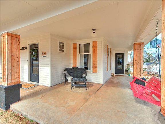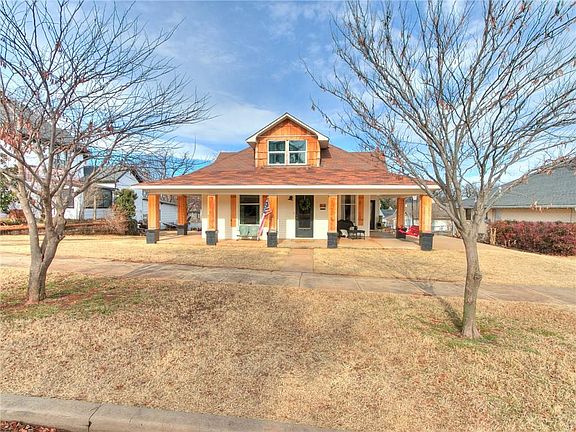SHOW STOPPER HERE! This historic home built in 1920 was totally remodeled in 2018! Huge Wrap-Around porch w/cedar posts & porch swing welcomes you HOME! Large rooms, original hardwood floors & woodwork/doors, pocket doors and more! Downstairs provides 2 living areas, 2 Bedrooms, Full Bath, Utility Room, Large Formal Dining & Kitchen. Remodeled downstairs bath includes double vanities & bath/shower combo. Kitchen is just STUNNING with updated cabinetry, countertops, flooring, lighting, fixtures, pantry & quaint workspace lined by historic windows! Upstairs find a large landing area w/ 2 more bedrooms, full remodeled bath & charming storage closet off bathroom. Two separate CH&A units for comfort. This home can be used for 4 beds + Study or 5 Bedrooms. Parking provided in rear of home with detached garage/opener & extra parking space. Fully fenced backyard. This home is located near Highland Park w/Pond, Walking Trails, Pool, Tennis Court & close to downtown Guthrie! Don't miss this one!