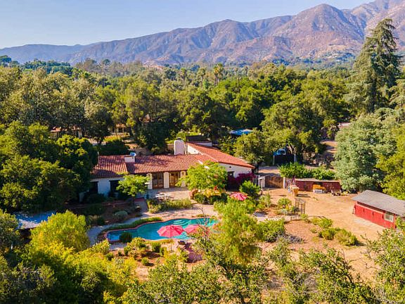 Own a piece of historic Ojai with this authentic 1920's California Adobe, beautifully maintained and located in the desirable Arbolada. The incredibly rare and unique 4 bedroom main house will charm you with its hand plastered thick adobe walls, exposed beam ceilings and architectural details throughout. The gated property offers privacy and sits on nearly an acre, including a legal second dwelling (guest house? friends or in-laws?) with one bedroom and loft and its own private yard. There is a sparkling pool and spa with tea house on one side of the main house and an inner courtyard with stage on the other, the perfect layout for entertaining. The location is minutes from all downtown Ojai has to offer yet you may not ever want to leave!