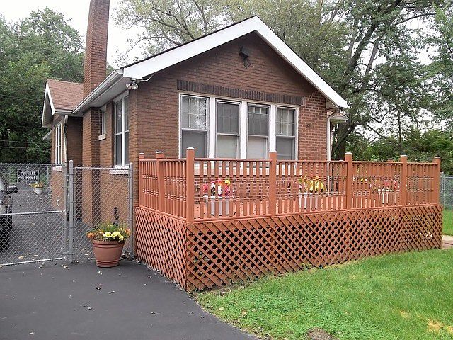 Great bungalow with 3 bedrooms one bath. enclosed front porch, oversized lot move in condition. Very nice fenced in yard and 2 car garage.