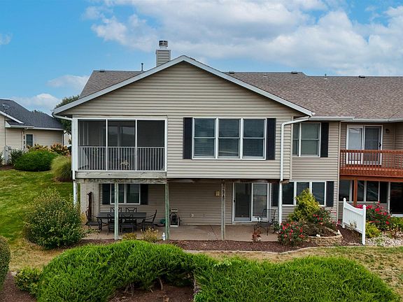 Great opportunity! These attached single family homes are rarely for sale! Breathtaking Mississippi River views the moment you walk in the front door, continue enjoying the view from your 4-season room and screened in porch! Open concept floor plan, great for entertaining! Formal and informal dining areas. 4 Skylights, vaulted ceilings. Stone fireplace is the focal point of the great room. The beautifully designed kitchen features granite counter tops, a functional layout, island ideal for meal prep and casual dining. All appliances included. Has everything the home cook needs within easy reach! 1st floor laundry room includes utility sink and drop-down folding table. Primary bedroom has large bathroom and walk-in closet. Finished basement with rec room, walk-out to covered patio area with additional river views! 3rd bedroom with day light windows and full bath + lots of storage space.