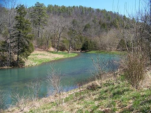 OZARKS HIDEAWAY - LAKE, WATERFALL, BIG SPRING,BUFFALO NATIONAL RIVER 8 MILES AWAY. Well-built 1,600+ sq. ft. A-frame home overlooking a crystal clear lake fed by a big spring and a spring fed creek - - beautiful lake side meadows gently slope to the waters edge for swimming, fishing scuba diving, ETC. - - and on the backside of the dam downstream are beautiful water falls that can be heard from almost every part of the property. Home has 3 or 4 bedrooms, 2 baths, living room, den, fully equipped kitchen, open beam cathedral ceilings, loft bedroom and lots of glass to look out over the lake. The home has a 2 year old Trane Central Heat and Air. The home has a big 12ft. by 32ft. with 15ft. by 32ft. concrete patio beneath in front of home and 12ft. by 16 ft. back deck with 15ft. by 16ft. patio underneath. The property has a big spring and water fall creek on it. It is located along dead end road approximately 3 to 4 acres of lakeside meadows and 12ft. by 16ft. lake side cabin/cabana. 36 acres of nice big timber, Pine and Hardwood and 24ft. by 32ft. garage/workshop building with concrete floor and Electricity. Priced to sell at $255,000!!!!PERSONAL PROPERTY ENCLUDED: BOAT, D&R BRUSH MOWER, RIDER LAWN MOWER (please call for complete list)