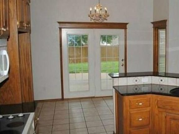 Wood-like ceramic tile throughout. Granite countertops, even in laundry room. Two-sided fireplace. Sun room. Tall ceilings. Open, airy interior, recently remodeled in classic neutral colors and oil rubbed bronze hardware and faucets. Large kitchen with recessed lighting, under-cabinet splash lighting, and a roomy breakfast bar. Double sinks, roomy tiled showers with custom insets in bathrooms. Two-person, corner Jacuzzi tub in master bathroom separating his and her vanities. Walk-in closet in master bedroom. Plenty of closet and storage space throughout. Custom Levolor rolling shades on all windows. Large backyard. Wonderful neighborhood with sidewalks. House on quiet street with little traffic but just around corner from gas station, grocery store, pharmacy, library, medical offices, clothing boutiques, and restaurants.