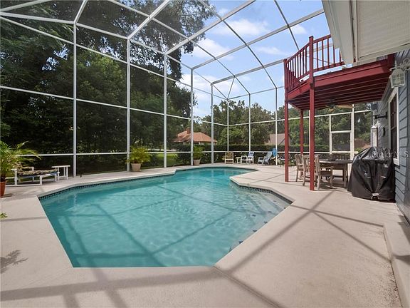 This 4 bed 3.5 bath home boasting over 3,100 sf of living space offers the perfect combination of country living, with all the nearby amenities to make life convenient. Surrounded by mature trees, this brick façade pool home sits in a park-like setting. Relax on the spacious patio and take a dip in the pool, fully screened offering year round enjoyment. Inside you'll find a formal dining room with crown molding and chair rail, formal living room, and family room with wet bar and slider to the pool and patio and a fully equipped kitchen with GE stainless steel appliances. A casual dining area offers additional space for entertaining, or just for everyday living. The upstairs master suite features a walkout balcony overlooking the pool, and the master bath includes dual sink vanity, walk-in shower and luxurious jetted soaking tub spa. Additional beds and baths will easily accommodate guests and family, including a pool bath leading to the patio. The community park with tennis , basketball court and playground is just around the corner from this home.Located in the gated Wekiva Glen community, just down the street from the world famous Wekiva Springs State Park. Close to shopping, dining and everything that Central Florida has to offer. Call now to schedule your showing!