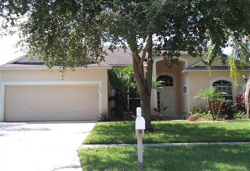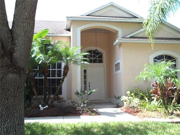 This South Valrico Three Bedroom/ 2 Bath, 2 car garage home with over 1900 sf ft of living area, features Brazilian Cherry hardwood floors, ceramic tile baths/ laundry, carpeted bedrooms. With 12 ft and 10 ft ceilings thru-out - designer ceiling fans, lots of light flows thru the 7 ft sliders (4), Lots of plant shelves and rounded corner beads, in this open floor plan. The kitchen has gas appliances, lots of cabinets, counter bar and separate place for Kitchen table. Split bedroom plan. Master Bath features his and hers separate sink vanities, garden tub and walk in shower, and water closet with glass block window. An Expanded HUGE lanai over looks the fenced private backyard. No expensive watering bill with RECLAIMED WATER for sprinklers, Approx. $20 a month for HOA and no CDD. Located in the best school district, "A" rated Valrico Elementary school and a Hillsborough Community Park, providing lots of activities, across from the entrance to this community. A one street subdivision and located close to everything. A rare find and in immaculate condition.