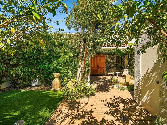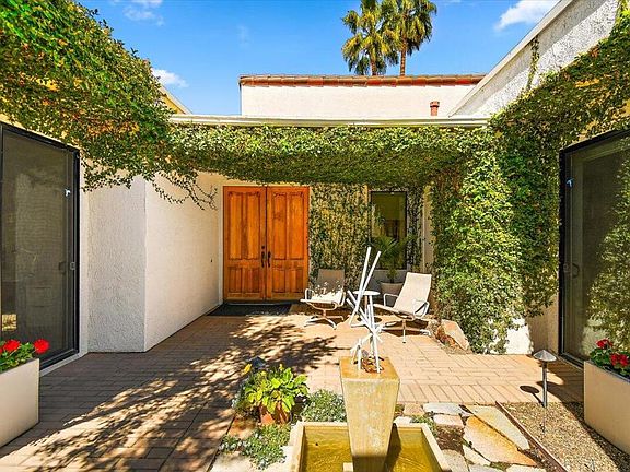 Accepting BACK Up offers. Every room of this well planned home opens onto a romantic private garden.Recently remodeled, the home has 21 solar panels and 3 Tesla batteries, all withwarranty and paid for, making this residence cost efficient to operate. Unique tothis home is a wide gallery hall, upgraded LED architectural lighting, and the househas been hardwired with CAT5 with a central hub. There are two new high efficiencyTrane 4-ton heat pumps and compressors,The remodeled, Kitchen features contemporary cabinets, a 36' Bertazzoni Range anda sub-zero wine/beverage center. The two guest bathrooms, both completelyremodeled feature high end finishes, fixtures and lighting. The primary Bathroom, hasbeen refreshed, features back-to-back vanities, dual wardrobes and generousskylights. The shower valves and Speakman spray are new, providing abundant waterpressure.The oversized two car garage, entered from the courtyard, features a storage room, atrash room and a golf cart space.The land lease on this property has been extended through 2121. Located within Mission Hills Country Club, this gives you a lifestyle of relaxation, social aspects and sporting activities. 3 private Golf courses, 19 tennis courts and 13 pickleball and croquet court, all available with membership. If a private membership is not what interests you, there is the Westin within and most of those options are available as well. Ask me how. Makes for an awesome lifestyle experienc