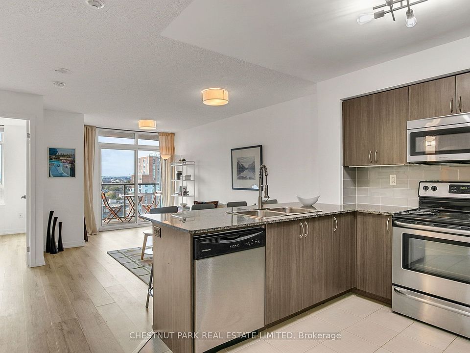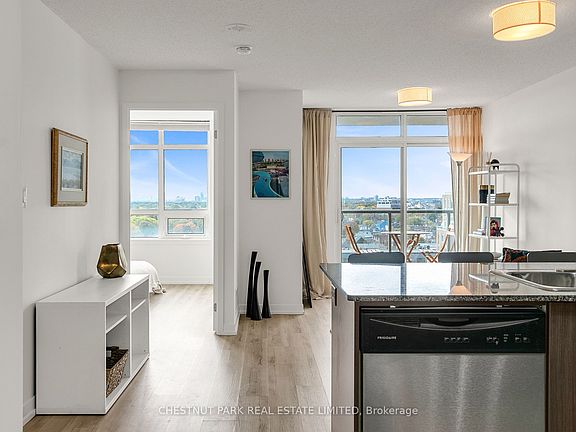 Fabulous Opportunity in the Upside Down Condos in the Junction neighbourhood. This spacious 1-bedroom condo offers 583 square feet of thoughtfully designed living space. Filled with natural light with unobstructed west views in the day and spectacular sunset views in the evening. The open-concept layout features a modern kitchen with stainless steel appliances, granite counters, and a breakfast bar; perfect for casual dining or entertaining. There is a good sized balcony and a locker for your extra storage needs. This is a well-maintained building with excellent amenities and on-site property management. There is a basketball court, full gym, yoga room, sauna, library, billiards, party room, and visitor parking. The location is steps from the shops at Dupont & Lansdowne with an excellent Food Basics and Shoppers Drug Mart. There are trendy cafes, restaurants and wonderful local parks close by; including the soon to be completed Wallace Emerson Community Centre and Torontos hottest new location; the Geary Avenue strip. With easy access to UP Express and the subway, commuting to downtown or Pearson is a breeze. PARKING AVAILABLE TO RENT THROUGH PROPERTY MANAGEMENT.