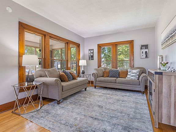 Cute bungalow-style home with tall ceilings and an inviting front porch. The back includes a deck and is fully fenced in with a newer driveway that runs the entire length of the property! Professionally landscaped for easy maintenance year round. Kitchen offers plenty of cabinets, new granite countertops, easy to clean backsplash, new tile floor and all stainless steel appliances that stay! Separate dining room has space for a large table to accommodate the entire family! Spacious updated bath on main level and a spacious family room and third bedroom upstairs. One car garage with new garage opener and separate entrance to the partially finished basement. Laundry area, a full bath, and an extra room can all be found in the basement. Updated windows and all mechanicals in working order. Agent owned. Sold as is.