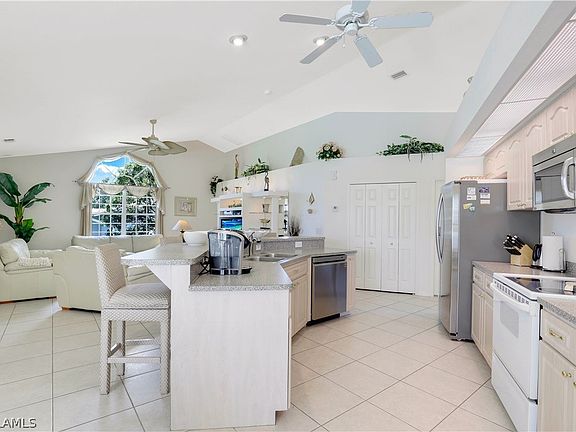 BOATERS DREAM & step into this bright & open sailboat access home MINUTES to open water and located in one of the best neighborhoods in SE Cape Coral close to Cape Coral beaches and Marina, shopping and dining. This home showcases what the SE Florida lifestyle is all about. Home features 3 bedrooms and a den/or 4th bedroom. The great room has a built in wall unit and pocket sliding doors that open to the oversized lanai; heated pool and plenty of space under truss. Open bright kitchen with plenty of cabinets, and stainless appliances and breakfast area with a water view. Master and hall bath have been updated , seamless shower doors, granite and elegant fixtures. Located on a direct access canal with a wraparound dock, 10k lb. boat lift with canopy: Pool bath, mature landscaping, newer air handler and pool heater 2019 help complete the appeal of this home. New Roof in 2018. Move-in ready, just bring your sunscreen! CAN BE PURCHASED TURNKEY. Home is currently in a successful seasonal rental portfolio! 2022-11-23
