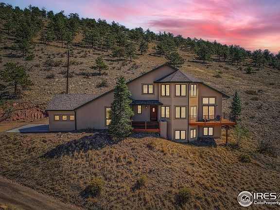Enjoy spectacular 360-degree VIEWS of snow-capped peaks, foothills, and night sky from this CUSTOM home. Set on a PRIVATE 1.23-acre lot, this recently REMODELED 4Bed/4 Bath, 2,700 SF home is among the best Lyons has to offer. Framed by breathtaking vistas of Longs Peak and Mount Meeker, the open-concept main level boasts a chef's dream kitchen with beautiful clear Alder cabinetry, soft-close glides, pullout drawers, under cabinet lighting; granite countertops, Viking appliances, a large composite sink, and huge island. The adjacent dining area provides plenty of room for entertaining. The cozy living room features a floor to ceiling gas fireplace and new sliding doors that open to the west-facing deck and backyard. Upstairs find a luxurious primary suite with a spa-like 5-piece bath featuring a soaking tub, custom shower, double sinks, Alder cabinets, granite counters, and yes, awesome views. The garden-level basement offers a third bedroom, office/studio, and bonus room. An oversized 864 SF garage includes over 275 SF of workshop space plus exterior parking for RVs. Conveniently located in town, with EZ easy access to all that Lyons has to offer including great restaurants, schools, shops, parks, trails, the river, music festivals, art, and more. Convenient to Rocky Mountain National Park, Boulder, Denver, and DIA. Request our features brochure to see all the fabulous amenities this property has to offer.