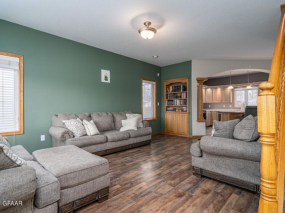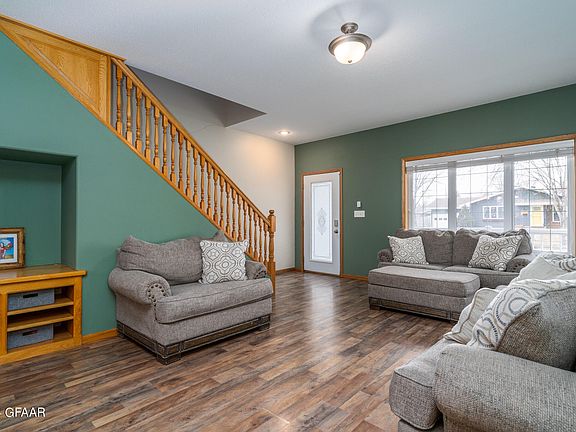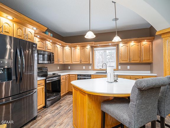 Looking for a large home on the northend of Grand Forks? Check out this custom-built gem from 2004. This two-story residence effortlessly combines style and functionality. The main floor has a beautiful custom kitchen with arch entrance. It also features a spacious rec room with a gas fireplace and a chic wet bar. The second floor houses all bedrooms and the laundry room, providing convenience. The primary bedroom is a retreat with an ensuite and a balcony.