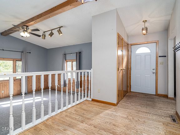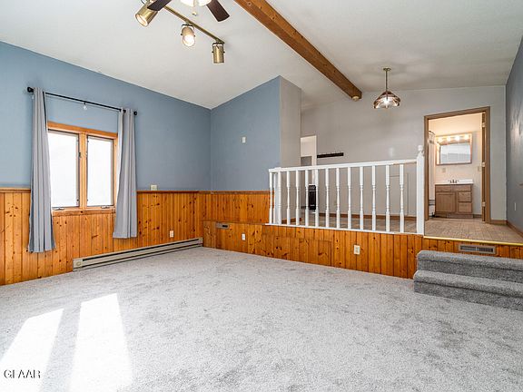 Experience the charm of small-town living in this move-in ready 3 bedroom, 2 bathroom home sitting on two lots in Warren, Minnesota! The main floor features a convenient primary suite with a Hollywood-style bathroom, a spacious dining room, and vaulted ceiling in the living room. Upstairs features 2 bedrooms and 1 bathroom. Recent updates include a newer furnace, gutters, central air conditioning, and fresh carpet throughout.