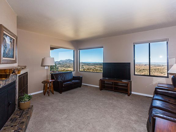 Million dollar VIEWS * Granite Dells, Thumb Butte, Granite Mountain, & Willow Lake *** BACKING STATE LAND……and a 17’x 54’ room with indoor, salt water 10x40,heated LAP POOL w/Full Steam Shower !!!!! This Beautiful Home, located in the Highly Sought After YAVAPAI HILLS Subdivision, has 2138 Square Feet of Semi CUSTOM Construction, 3Bedrooms/3Bathrooms/Oversized 2 Car Garage w/Storage, NEW Exterior Paint, NEW Carpet, NEW Custom Window Coverings, 2 Tone Paint, 14” Tile in all Wet/Traffic areas, 2 Sided Gas Log Fireplace, Formal Dining, Ceiling Fans, Skylights, & Plumbed for Central Vac. The Kitchen is Spacious & Well Appointed with Birch Cabinetry w/(Pull Outs), GRANITE Counter Tops, STAINLESS STEEL Appliances, Tiled Back Splash, Pantry, Planning Desk, & a Veggie Sink/Wet Bar. Your New Master is Large w/Access to Private Deck & POOL Area, Dual Lavs, Tiled Counter Top, SNAIL SHOWER, & Lg Walk-in Closet. Both Guest Bedrooms are Good Sized, , Security Screen Doors, Superior Landscaping, Huge Crawl Space w/Potential for Workshop/Man Cave, & Enjoys Lots of Wildlife to go with the INCREDIBLE VIEW !!!!!
