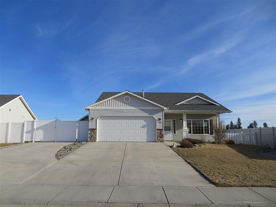 Don't miss out on this beautiful one level home in Fox Ridge on a corner lot. This home is move-in ready and handicap accessible with no stairs, wide doors/hallways and a walk-in master bathroom shower. There are 3 bedrooms one of which has French doors and could be used as an office. The oversized backyard is fully fenced with a patio, sprinkler system and storage shed. Enjoy the warmth of the free standing gas fireplace in the spacious family room off the kitchen. There is a 3rd bay for RV parking.
