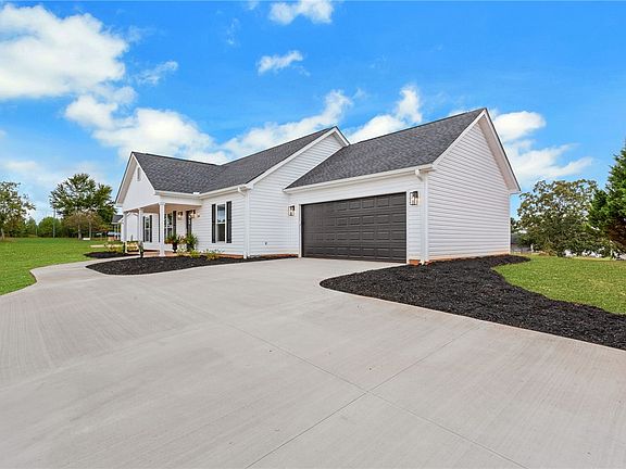 Designed for comfort and convenience, the open-concept floor plan features a stepless entry for easy access and a smooth flow throughout. Southern charm greets you at the rocking-chair front porch, while the backyard overlooks a peaceful pasture with horses, creating the perfect country retreat.