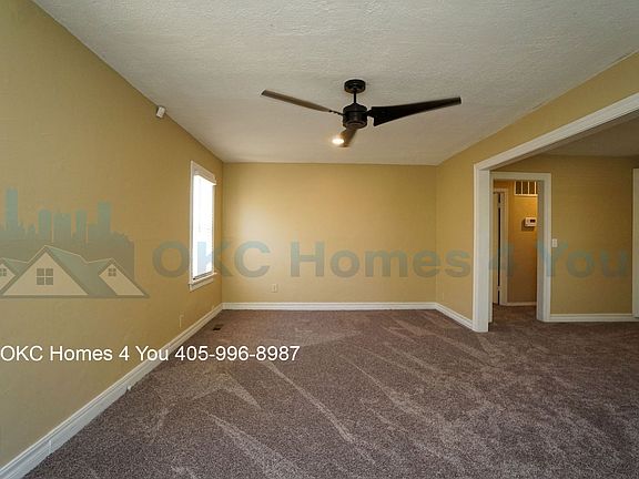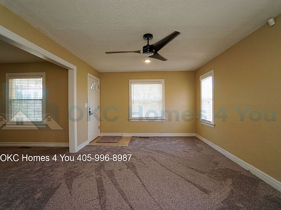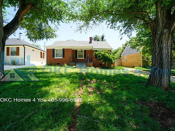 Move-in special save 50% off the first months rent. Schedule a showing for this beautiful 2 bed, 1 bath home with an inviting front porch! Recently painted, carpeted, with updated fixtures throughout. The kitchen has modern brass accents and includes an electric range, garbage disposal, dishwasher, and refrigerator. There is a formal dining room and a good-sized living room. One bedroom is oversized with a walk-in closet. The bathroom has good storage and contemporary lighting. There is also a detached garage, fenced backyard with a patio and lawn sprinkler system. An in-ground storm shelter is in the detached garage. Security deposit $1,350. Tenant pays all utilities. Tenant must provide their own washer and dryer. No smoking. Up to 1 cat and/or dog may be accepted with an additional $300 security deposit per pet. Weight and breed restrictions may apply.