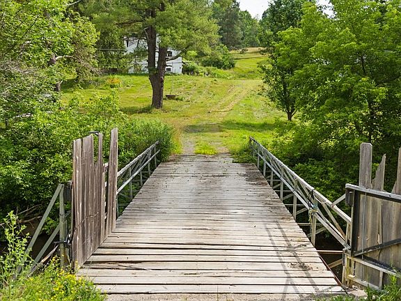 Secluded Farm w/ Over 50 Acres! Private Bridge Re-Built Rated for over 90,000 lbs, Large Barn w/ Chicken Coops, Open Fields & Woods. Quiet & Peaceful Setting w/ lot's of wildlife! Don't Miss This Gem