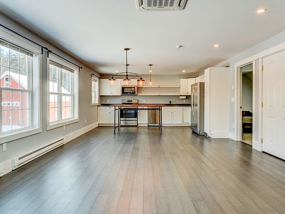 Welcome to Holderness Farm! This historic property has been creatively renovated into beautiful apartments offering a very unique and special living experience. Unit 5 is a stunning renovated apartment featuring an open concept living space with a private entrance and beautiful bamboo flooring.Wake up in the large primary bedroom to a beautiful mountain view, cozy reading nook, and big walk-in closet with plenty of storage space. The spacious second bedroom features a large closet and the same gorgeous mountain view.Cooking and entertaining is easy in the large kitchen with stainless steel appliances, dramatic shelves, and many Shaker-style cabinets for plenty of storage. Enjoy the big 4'x6' walnut butcher-block center island, side-by-side refrigerator with ice maker, 5 burner electric stove, ultra-quiet Bosch dishwasher, sleek black sink with spray fixture, and built-in convection microwave.The large open-concept living/dining area is full of sunlight from a dramatic wall of windows framing the farm's historic red barn. A convenient wall bracket awaits your TV and the dining area features a fun retro Edison LED light fixture. The large well-lit bathroom includes double sinks, full bath/shower, chair height toilet, and convenient linen closet.Central air conditioning and heating ensures comfort with a high-efficiency heat pump system to save money. Energy-saving LED lighting in all rooms. Extras include a free onsite shared laundry area as well as lighted free parking and climate-controlled basement storage units (separate monthly fee).Enjoy your summers with a fun BBQ on the backyard patio, refreshing swim in Squam Lake at the Holderness Town Beach, hiking one of the area's many trails, or relaxing on the white Adirondack lawn chairs watching spectacular sunsets. Winter outdoor options include skiing, snowmobiling, snowshoeing, and ice skating all within 20 minutes.All of this in an unbeatable location for convenient daily living: 1 mile from I-93 exit 25, 1 minute to the Holderness School, 3 minutes to downtown Plymouth and PSU, 5 minutes to the supermarkets, shopping, restaurants, and much more. Life is so much better at Holderness Farm.