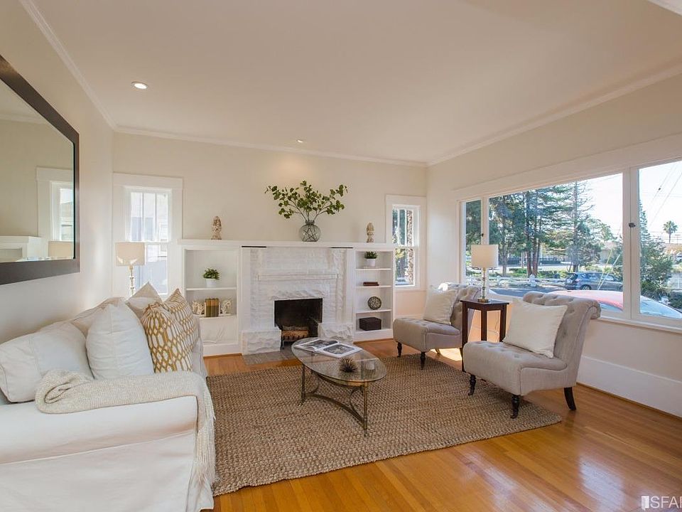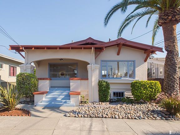 This gorgeous Craftsman home was built in 1917 and combines wonderful vintage details with modern upgrades. The house offers a classic Craftsman stucco exterior with wide steps that lead to a covered front porch with Arts and Crafts columns, graceful arches, and a large picture window. The front yard has low maintenance, drought-resistant landscaping and a striking river rock garden. Vintage interior features include golden oak floors, built-in bookcases, stained glass windows, a gorgeous Craftsman fireplace, and crown moulding. Upgrades included freshly painted interior and exterior, recessed lighting in living and dining rooms and an updated bathroom. The spacious kitchen/family room opens to a backyard deck and patio area.