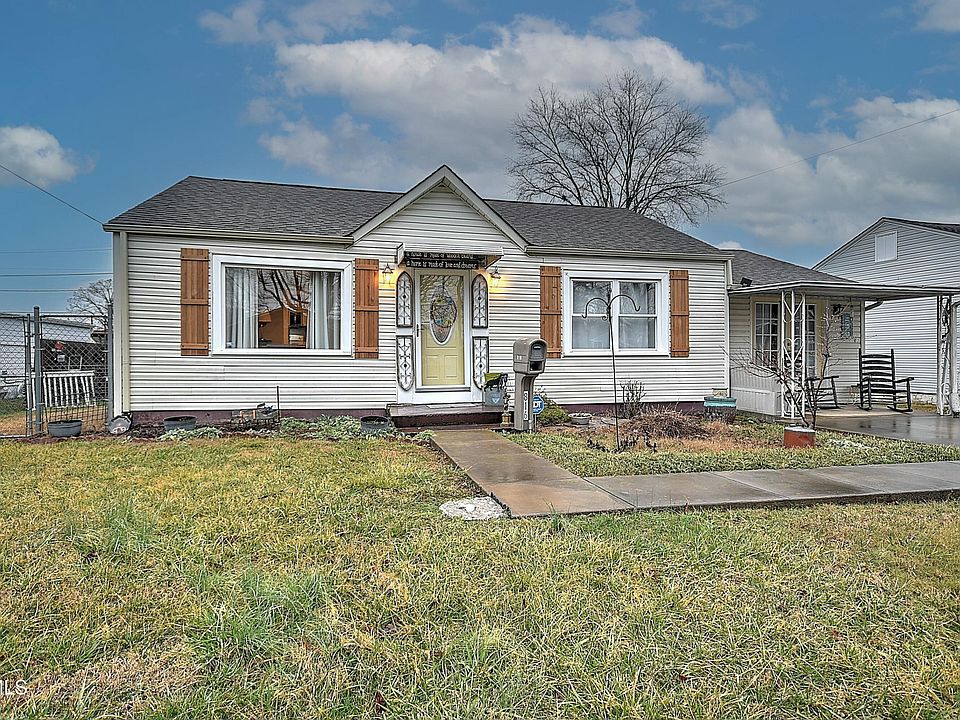 PERFECT LOCATION! One level 3 bedroom 2 bathroom home in a GREAT KPT city location, near Andrew Johnson School, walk to restaurants, shopping & FUNFEST! This home has Living room, eat in kitchen, covered back deck, fenced back yard. 2 guests bedrooms and guest bathroom with double sink vanity! Primary bedroom has french doors that open up to patio, walk in closet and primary bathroom with claw foot tub/ shower. Level lot!! NEW GAS FIREPLACE in living room (gas meter at side of house) not hooked up. SELLER IN PROCESS OF MOVING. please excuse mess
