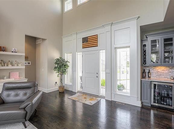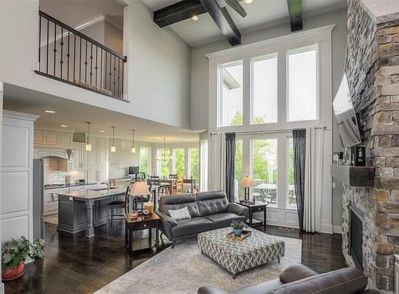 Fine Design is in the Details and this Home Checks all the Right Boxes starting with a Gorgeous Walk Out Lot backing to a Natural Wooded Area, featuring a Private Deck with Composite Decking and Covered Patio, Moving into the Great Room with it's Soaring Box Beamed Ceiling and Majestic Fireplace framed with Floating Shelves and Custom Cabinetry, which adjoins the Modern and Expansive Kitchen, featuring an Enormous Island and Beverage Center just steps from a Main Floor Master and Luxurious Bath including...