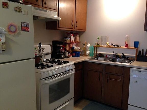 This house is on the end of a four unit building (see pictures). There are two bedrooms and an office/playroom upstairs. There is one bathroom. It is on the main floor along with the kitchen, living room and laundry room (full size washer and dryer). This is a great location in a residential area right across the street from Oakdale School which has a couple playgrounds and lots of green space. There is a basement that is somewhat inaccessible, but could be used for storage. There is a wall unit for air conditioning. Tenants pay all utilities. In 2020, that was about $150 per month (gas, water, and power), higher in the winter and lower the rest of the year. Neighbors are families, not students. It is not suitable for a college party atmosphere. $650 per month plus utilities. $650 damage deposit. No pets. Tenants pay for utilities. Absolutely no pets.