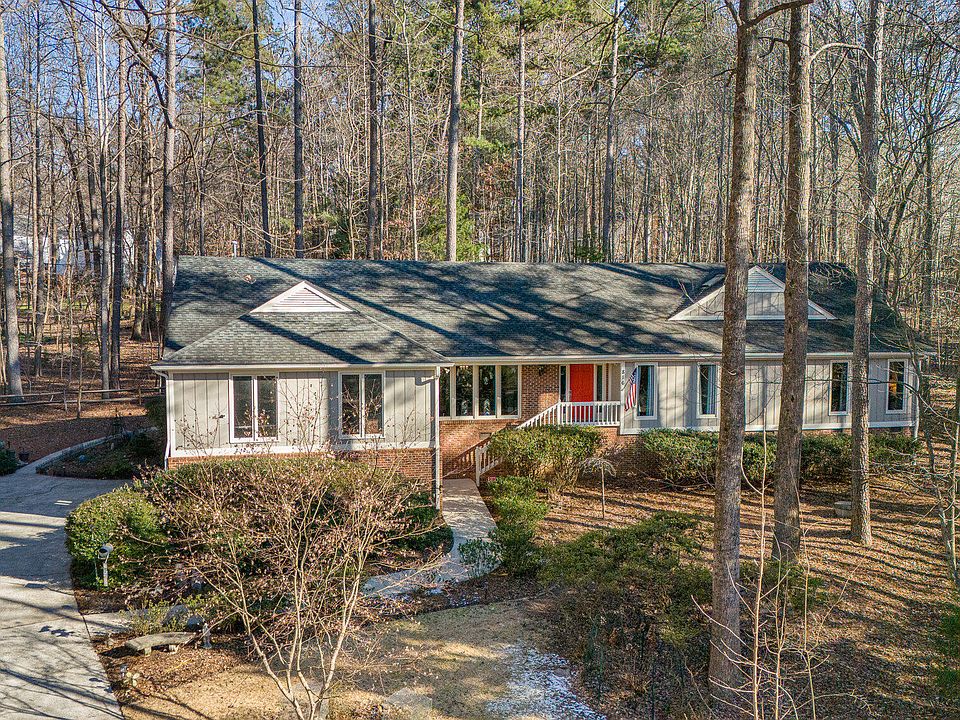 Back on the Market, no fault of the sellers. Located in the desirable Woods of Tiffany neighborhood, this well-maintained 4 bedroom, 3 bathroom ranch-style home offers an updated kitchen (2015) featuring stainless steel appliances, a farmhouse sink, gas range, double ovens, and a built-in microwave — making it perfect for cooking and entertaining. The sunken living room boasts vaulted ceilings and large windows with skylights that fill the space with tons of natural light. The layout includes three bedrooms on one side of the home, with a guest suite on the opposite end for added privacy. Come relax on the screened porch and brand new deck (2025) overlooking the mature trees and peaceful views. Recent updates include all-new plumbing (2021) and a fully renovated primary en suite (2021). The crawl space was encapsulated in 2025, ensuring energy efficiency and a cleaner environment. This home combines modern upgrades with a functional design for everyday living! Welcome Home!