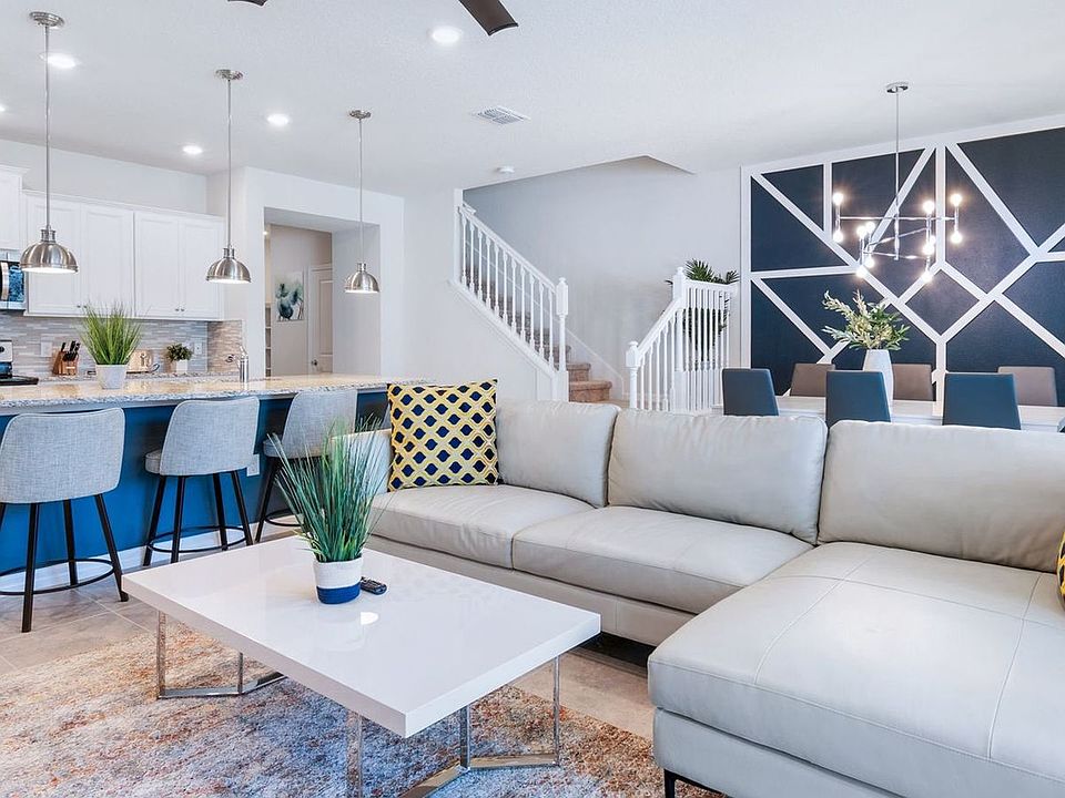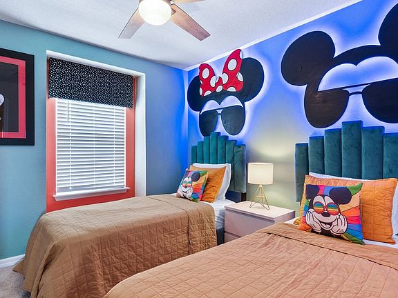Welcome to this inviting 5-bedroom, 4.5-bathroom private vacation townhome located in the Windsor Island Resort. Perfect for families, this home offers a comfortable base to explore Central Florida's attractions. The townhome features a private splash pool with a screened-in lanai facing west, providing a serene space to relax. Situated in a gated community, it's just 9 miles from Disney World. The fully equipped kitchen includes dining for six at the table and additional seating for four at the kitchen island. The townhome is thoughtfully designed with modern furnishings and a fully equipped kitchen, ensuring you feel at home. The first-floor bedroom features a queen bed and a 40-inch smart TV, while the second floor hosts two master suites, each with a king bed, attached bathroom, and 50-inch smart TV. Additional bedrooms include two twin beds each, both with 40-inch smart TVs. Optional pool and spa heating is available for an additional charge of $20 per day plus tax. The resort allows a maximum of three cars, including visitors, with parking rules strictly enforced. Additional rental items such as BBQs, cribs, pack-n-plays, strollers, and high chairs are available. Located on Paradise Drive, Windsor Island Resort offers easy access to shopping and attractions. It's 9 miles from Walt Disney World, 22 miles from Universal Studios, and 18 miles from SeaWorld. The Orlando Airport is 30 miles away, with Atlantic Coast beaches 78 miles and Gulf Coast beaches 85 miles away. Nearby conveniences include a Publix Supermarket 1 mile away and Walmart 4 miles away. The property is smoke-free and pet-free for your comfort. Guests must be registered to access the resort, and all guests over 18 must provide identification. The resort does not allow stays over 30 nights. Check-in is streamlined with online email access, and 24/7 on-call maintenance is available. Towels and linens are provided, and complimentary Wi-Fi is included. Supplies such as toilet paper, soap, and shampoo are provided as a starter pack, but guests are responsible for replenishing them. Parking is free on-site, but the third car must be parked parallel to the driveway to avoid blocking the sidewalk.