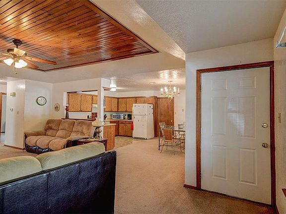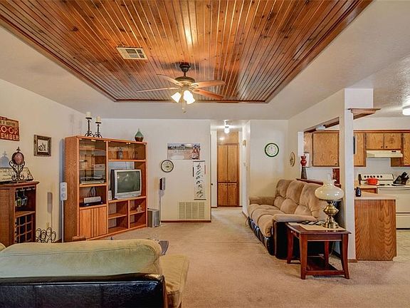 This adorable 2 bed, 2 bath bungalow will charm you with it's mature shade tree and crisp, white siding! Enter into your great room loaded with character from the in-laid wood ceiling and kitchen cut out! The dining room is easily accessible for serving and entertaining while the U-shaped kitchen provides plenty of space to cook for a private dinner or a crowd! Both bedrooms are spacious and flooded with natural light! The full bath is conveniently located and has extra storage for linens. An interior laundry closet is a plus! Your covered back patio is the perfect spot for a backyard BBQ and your lush, fully fenced yard is a blank canvas for all your gardening and landscaping dreams! An outdoor shed will hold all your lawn equipment and keep it dry! Perfectly located with easy access to Hwy 9 and I-35, this house is calling you home!