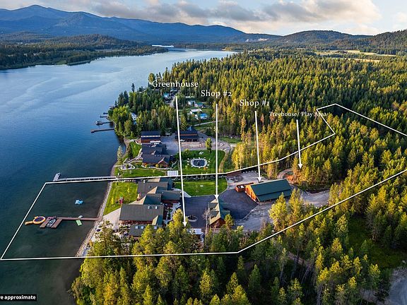 Experience the essence of North Idaho waterfront living with this magnificent Caribou Creek log home. Encompassing 7,748 square feet on 5.1 acres of pristine Pend Oreille river property, this residence showcases exceptional craftsmanship and natural beauty. Featuring six spacious bedrooms and five full baths, it provides ultimate comfort and convenience for family and guests. The centerpiece of the home is its expansive open-concept kitchen, living, and dining area, perfect for seamless entertaining. The kitchen is equipped with custom hickory cabinets, a sub-zero refrigerator, premium appliances, dual composite sinks, dishwashers and built-in microwaves making this a chef’s paradise. A versatile loft area offers additional space for an exercise room or extra sleeping quarters. Downstairs, two bedrooms offer breathtaking views of the river and mountains, while three more bedrooms and an additional full bath are located upstairs. The master suite is a luxurious haven with vaulted ceilings, two walk-in closets, a Hydro Tub, and a walk-in shower with dual shower heads. The outdoor spaces are just as impressive, providing a perfect setting to relax and enjoy the natural splendor that surrounds this exceptional property. Fully landscaped with multiple water features and drip systems to keep all the plants thriving. The beach has imported Olympic Volleyball sand. Wash off with two outdoor showers and head up to the pavilion where you’ll be invited to sit and cool off with the integrated misters, and a Bluetooth sound system. Carry out the ultimate party with a built-in BBQ and beverage fridge right next to the Passion Swim spa! For all those green thumbs there is a 16’x32’ state-of-the-art greenhouse with radiant heated floors, integrated drip system, intake and exhaust fans, along with on-demand hot/cold water. They didn’t forget the kids with the custom-built play structures. Fully insulated 60’x30’ shop, 6 doors, 220v hook up, and a full upstairs area for storage. It is equipped with heat/ac. Head over to the 40’x80’ shop where you’ll find four 14’ pull-through doors with 16’ ceilings. The estate also comes equipped with a 60 KVA generator that powers the whole property! In addition, they have all the lighting on a dawn till dusk electrical system. Security and privacy is paramount, including over 30 commercial grade cameras with full 360 capability. This riverfront gem is a rare find, offering unparalleled amenities and an idyllic lifestyle. Too much to list, please ask your agent to see featured sheet for all the details on property. Another contiguous 40 acres available as well. Owner financing possible with terms dependent on down payment.